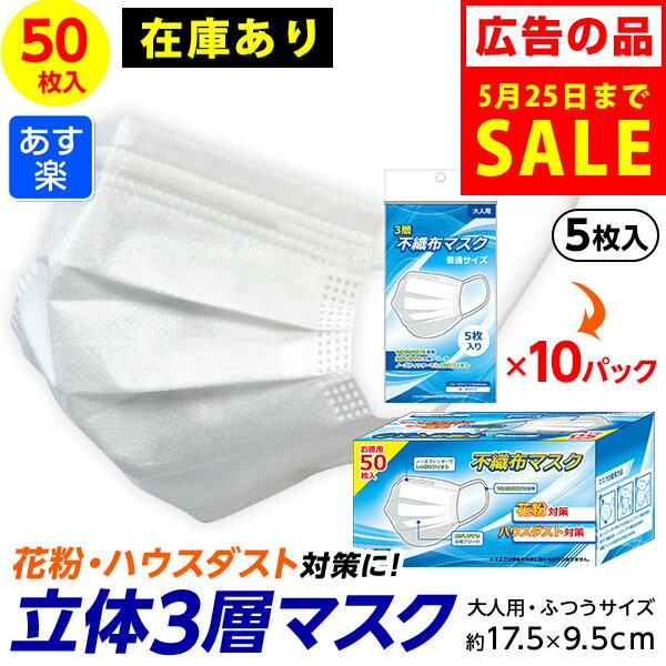 色:ホワイト【製品仕様】◆内容量50枚入(5枚×10パック入)◆用途花粉・ほこり・風邪の飛散防止・予防◆素材不織布(ポリプロピレン・ポリエチレン)◆生産国中国【ご注意】※衛生用品につき、返品・交換は一切できません。